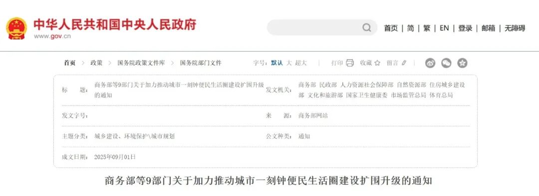 更多>>- 第二批城市一刻钟便民生活圈全域推进先行区试点名单公布 | 附名单2025-09-09
