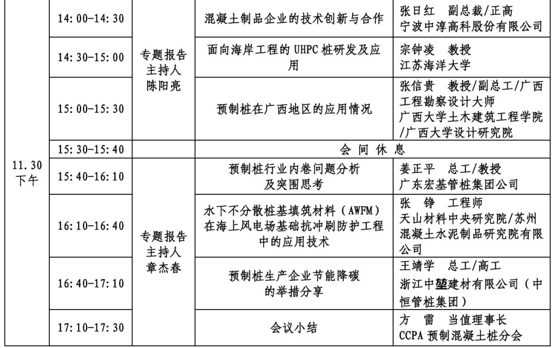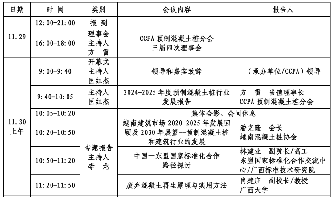 日程 | 第七届混凝土桩基材料创新制造与应用技术论坛