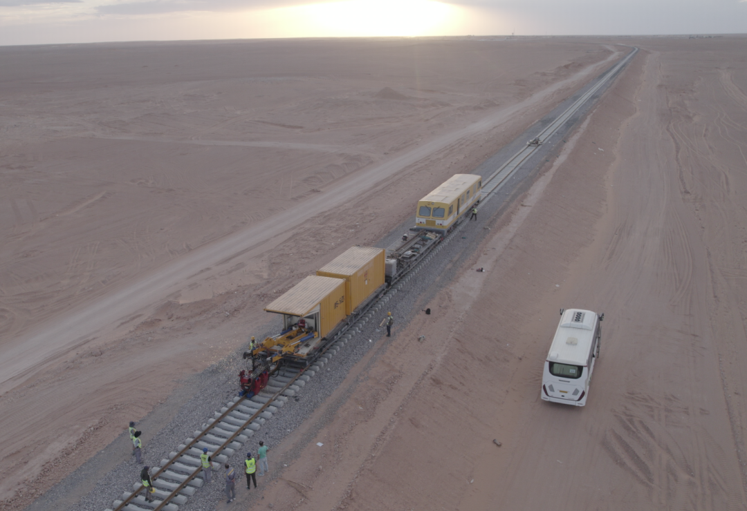 非洲首条沙漠重载铁路轨道铺通