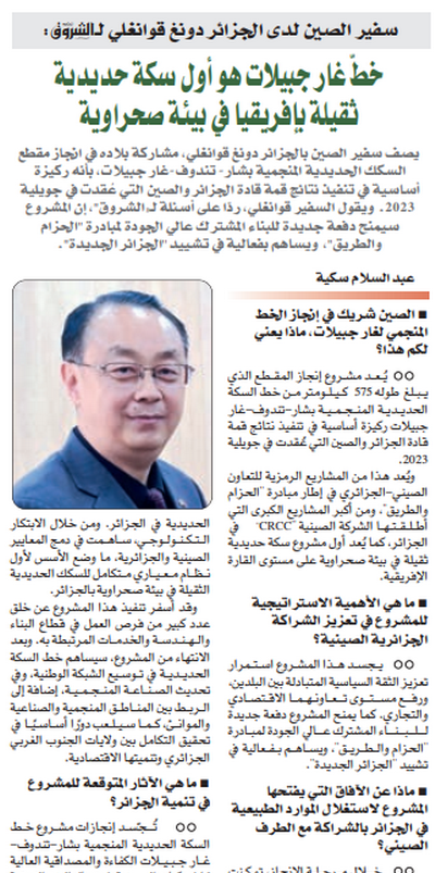 中国驻阿尔及利亚大使董广利接受阿主流媒体《曙光报》书面采访