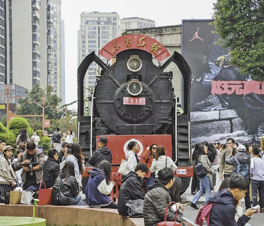 四川省成都市将东郊老工业区工厂旧址与文化创意产业结合,打造新的消费场景。图为东郊记忆街区游客众多。 陈柏全 摄