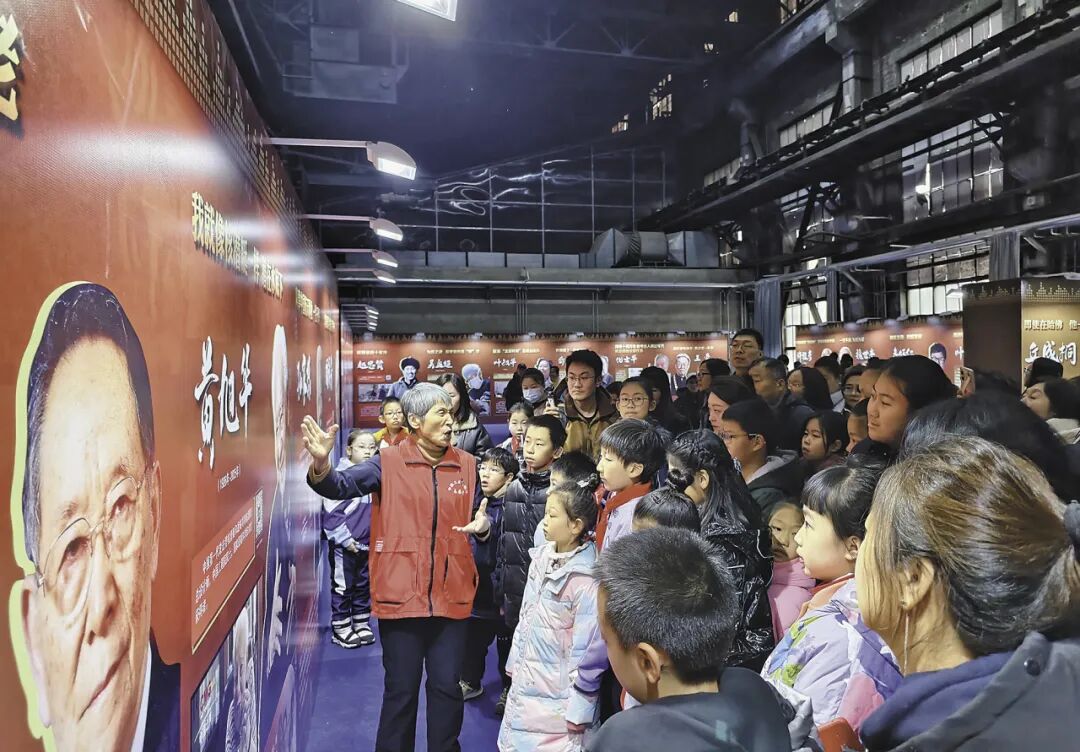辽宁省沈阳市中国(沈阳)工业博物馆,志愿者在为参观学生及市民游客讲解科学家生平和科技知识。该博物馆由沈阳铸造厂翻砂车间改造而来。 王荣巍 摄