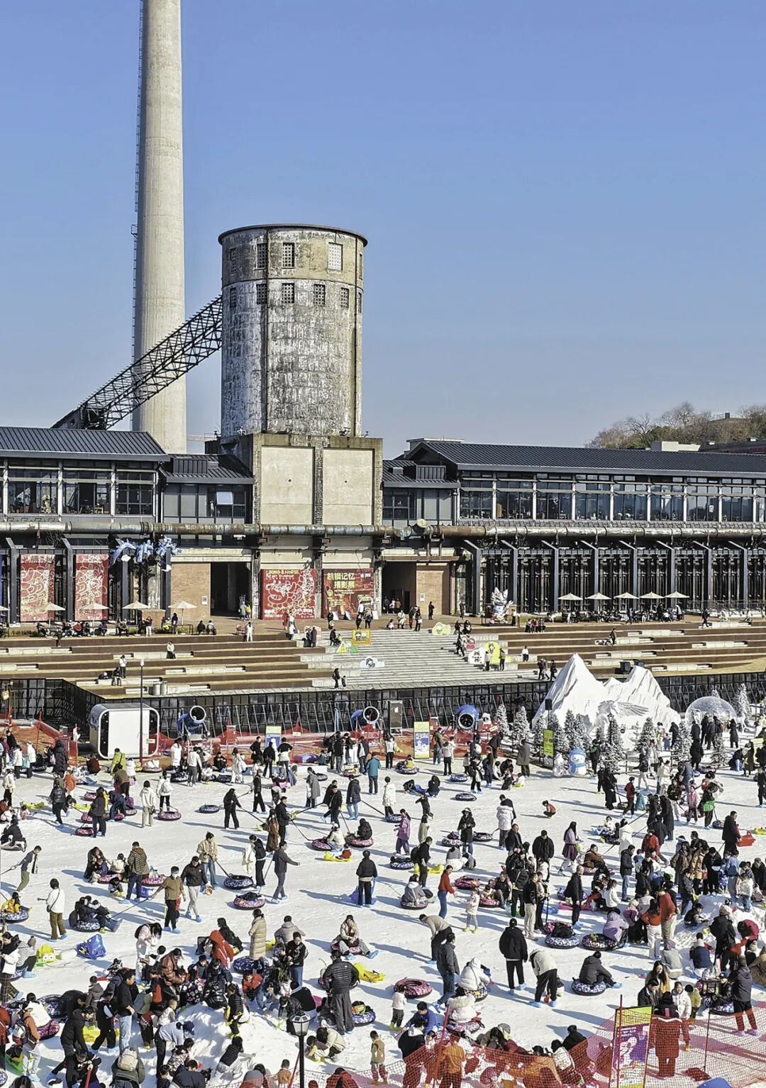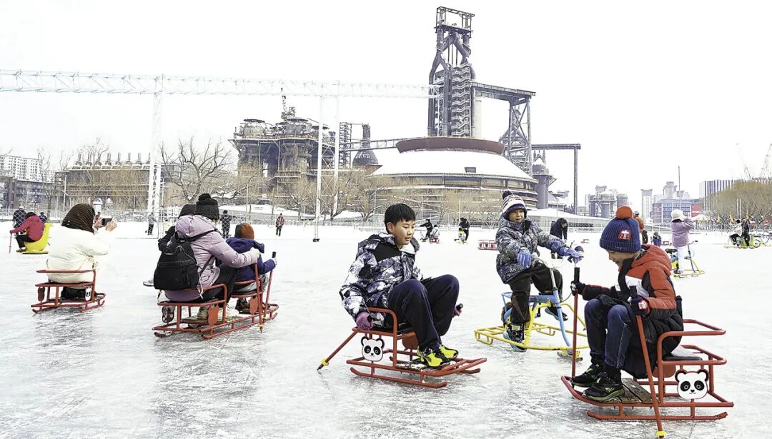 浙江省杭州市将杭钢半山钢铁基地融合运河文化打造大运河杭钢公园。图为市民游客在体验冰雪嘉年华。 李盛韬 摄