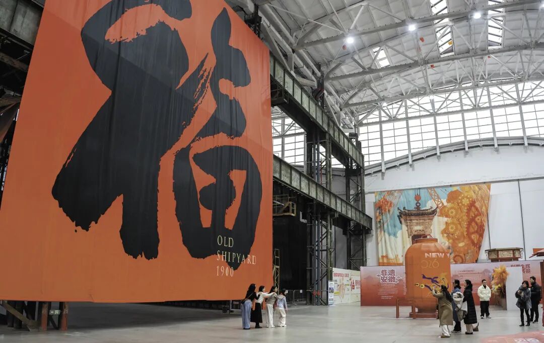 安徽省芜湖市“老船厂1900·新场REBOX”工业美学馆,2026“迎新春福字展”吸引众多市民游客前来打卡。章敏 摄