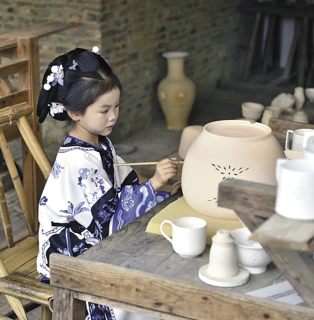 江西省景德镇市陶阳里徐家窑(原陶瓷厂),小朋友在体验陶瓷文化。 石卫明 摄