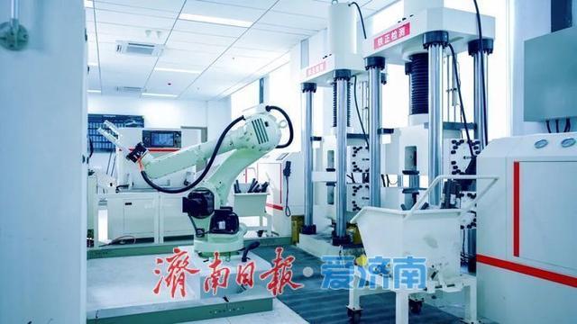 驻济央企中铁十四局智慧检测试验室内,检测数据在大屏幕上实时跳跃,试验室里看不到检测人员忙碌的身影,只有机械臂精准舞动,AGV机器人灵活穿梭,可24小时不间断运转,检测效率提升3倍以上,数据依旧精准可靠。