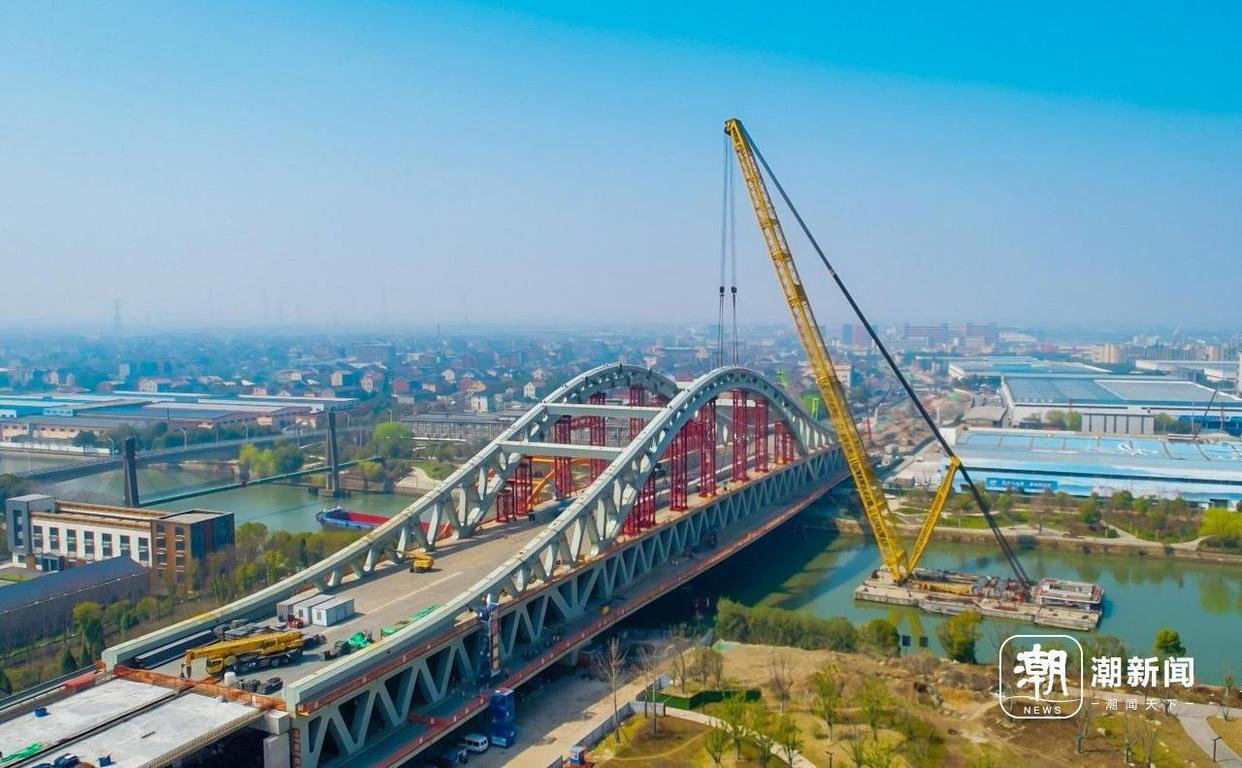 运河大桥主拱合龙,浙江首座双层钢桁拱桥雏形初现