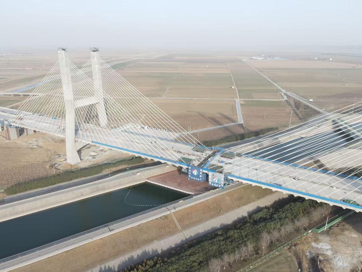 焦平高速焦荥段南水北调斜拉桥成功合龙