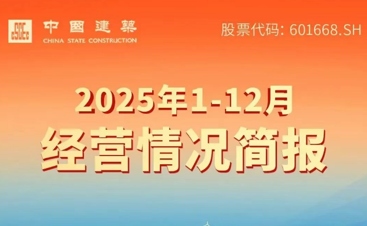 近日,中国建筑股份有限公司公布2025年1月至12月经营情况简报。2025年全年,中国建筑实现新签合同总额45458亿元,同比增长1.0%。具体数据如下:
