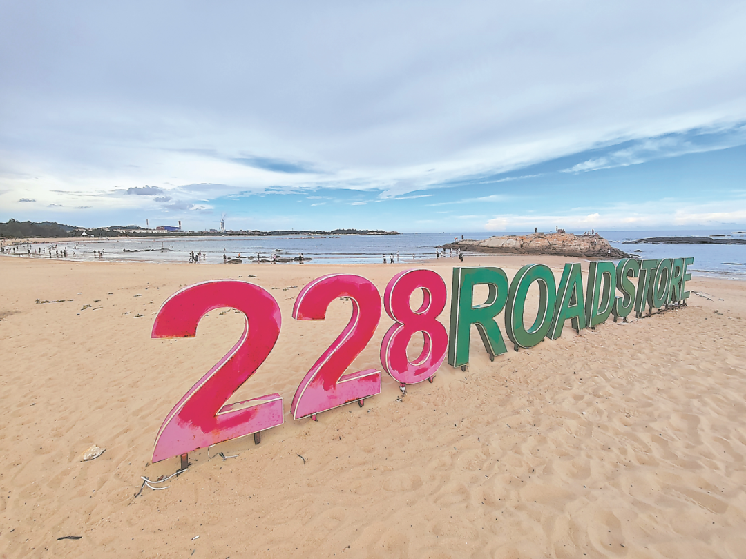 在G228惠安前见公路驿站,这个6000平方米的驿站里,文化景观石、树池坐凳、砖铺游步道、便利店、公共厕所等设施齐全,数米之外就是松软的沙滩,还有一望无际的大海。