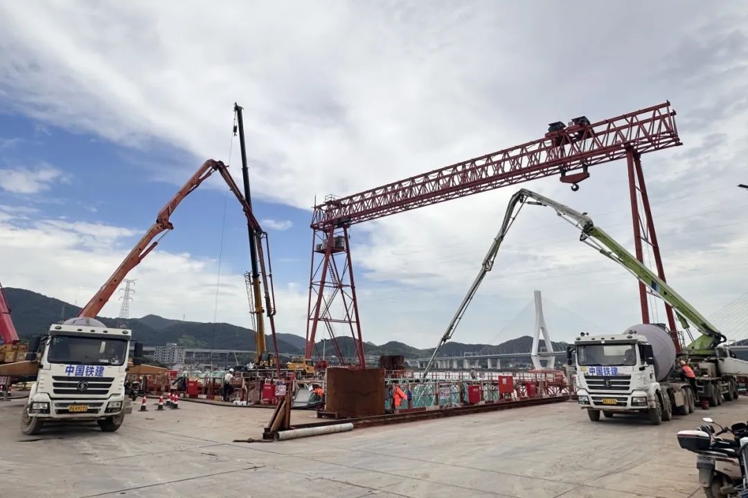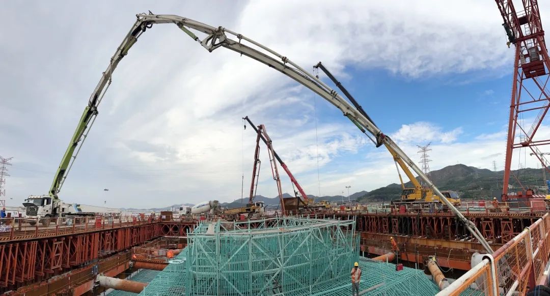 中建新材护航世界级桥梁关键节点——甬舟铁路富翅门大桥主墩承台4300方混凝土浇筑成功