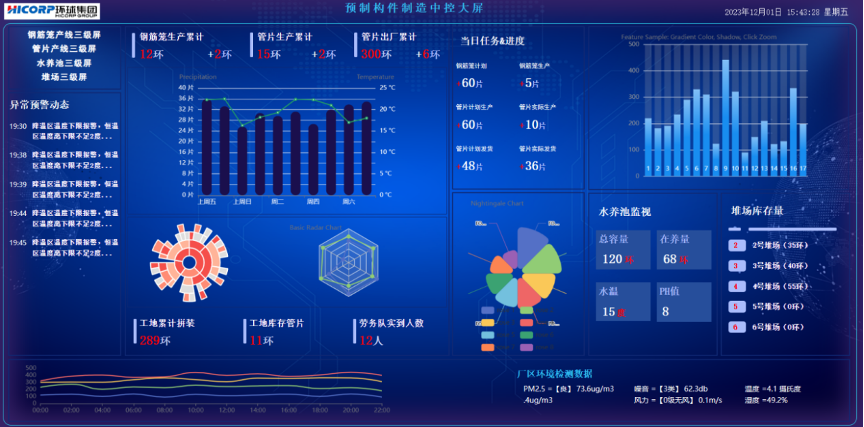 智慧化生产管理系统,是一套对混凝土管片生产的全过程进行信息化管理的SAAS平台,平台以建设管片生产和质量管控数字化为业务核心,对物料仓储、钢筋笼加工车间、管片流水线、蒸养窑、水养池等不同场景进行智能化管理,提升产品质量数据的真实性、全面性。通过研发大屏监视与BIM可视化的大数据智脑中心,将预制工厂建设成为具有数据采集自动化、生产管理智能化的智慧工厂。同时,利用大模型的多模态数据融合技术,构建兼容企业管理制度文档、生产工艺文档、设备操作文档、维保手册、电气原理图等多种文档的知识库,为管片生产各环节参与人员提供智能知识问答服务。