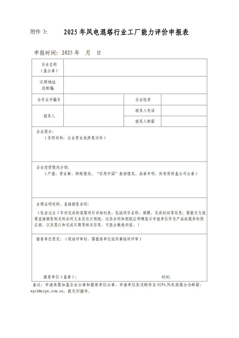 关于开展2025年风电混塔行业工厂能力评价的通知
