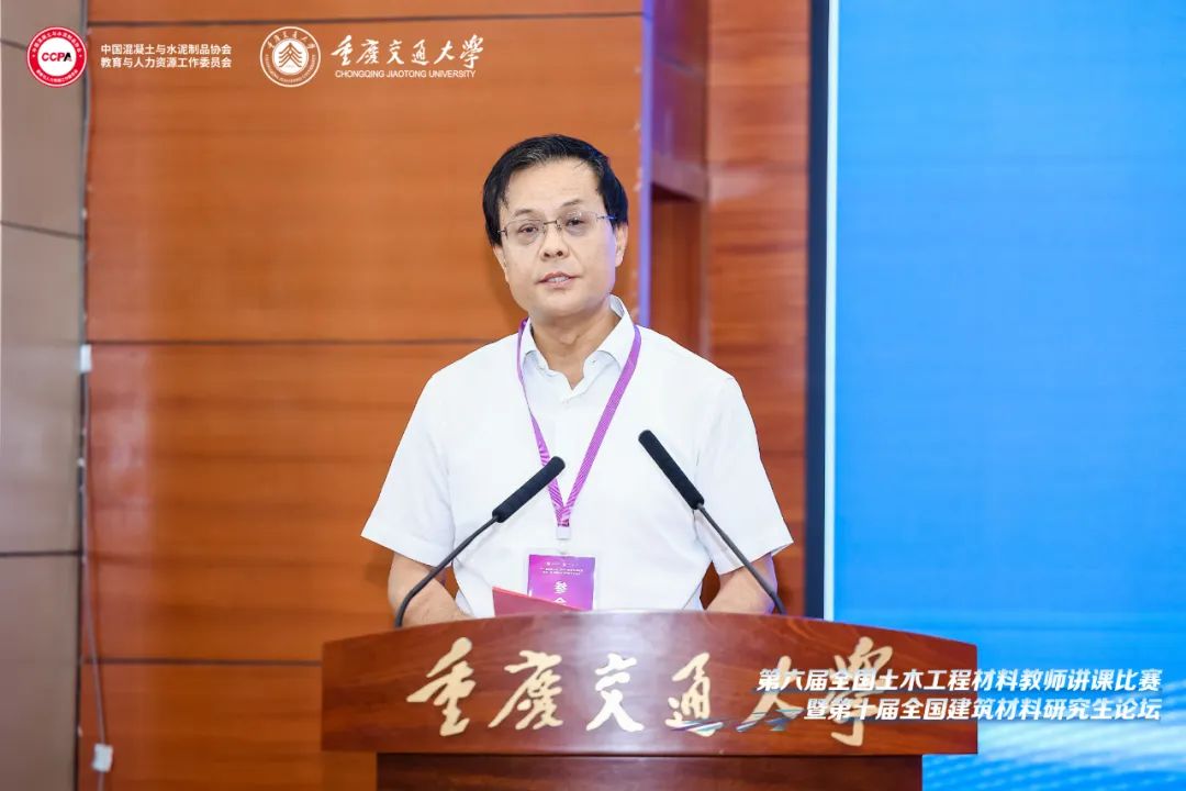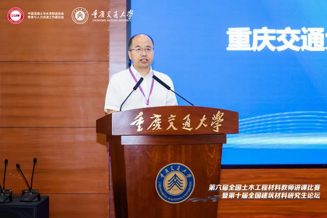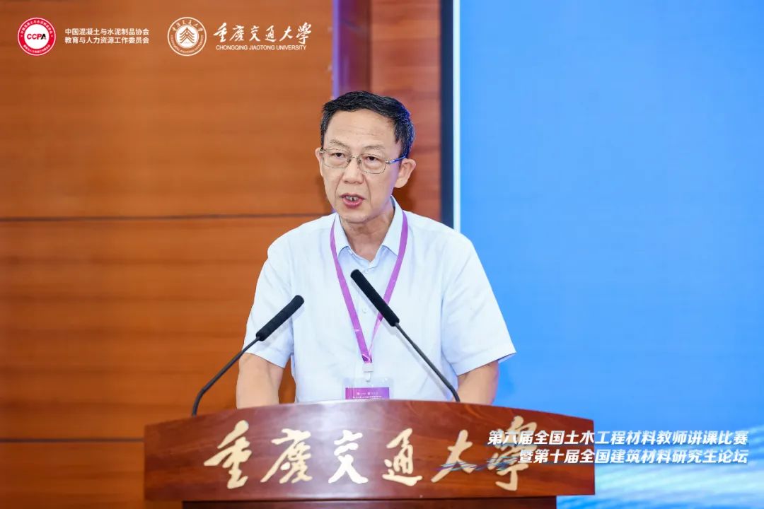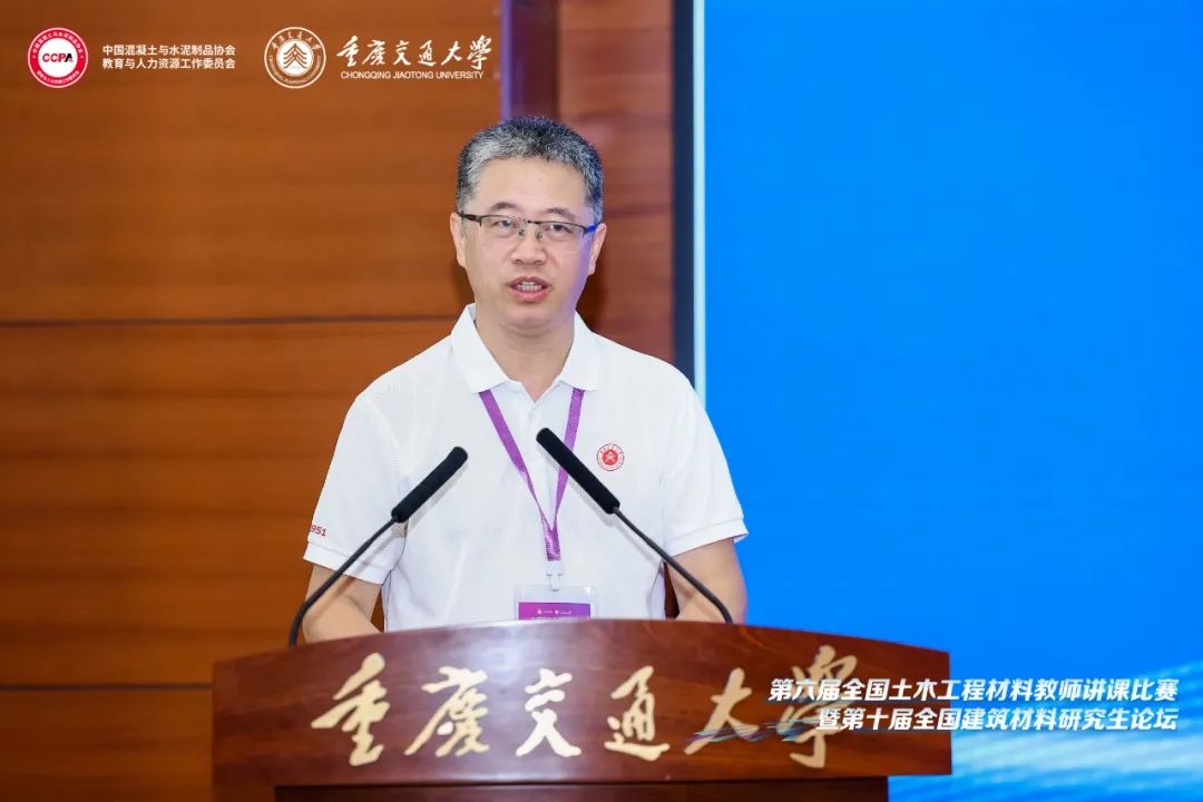 葛勇教授在致辞中表示,土木工程材料教师讲课比赛与研究生论坛自创办以来,基于其对土木工程材料学科人才培养和教育教学成效的重要推动作用,影响面不断扩展,规模稳步增大。当前,人工智能助力下的土木工程材料教育教学改革正如火如荼,专业理论、工程实践、数值仿真、多媒体、人工智能之间的深度融合和发展,为土木工程材料这门实践性很强的课程,提供了更强劲的推动力。同时,以学生学习成效为主的转变,“高阶性、创新性、挑战度”的一流课程建设要求,材料科学与技术的进步以及重点重大工程需要,促进了新型土木工程材料的发展与应用,对教学内容与教师的教学水平提出了更高的要求。希望赛事过程中参赛师生的技能展示和分享,以及各位评委老师的点评和指导,共同促进土木工程材料教师讲课比赛与研究生论坛的高质量发展。