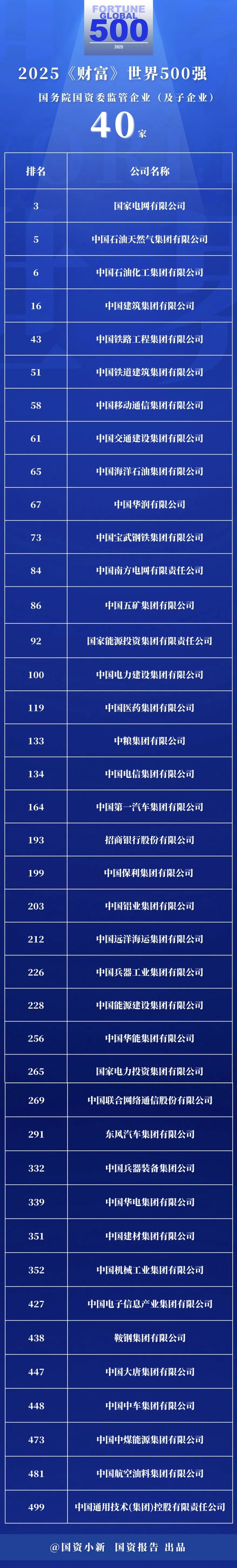 2025年《财富》世界500强 国资监管系统74家企业上榜