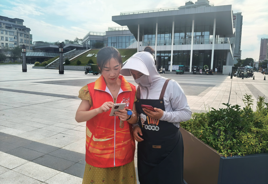 志愿者指导群众在福管家平台点单