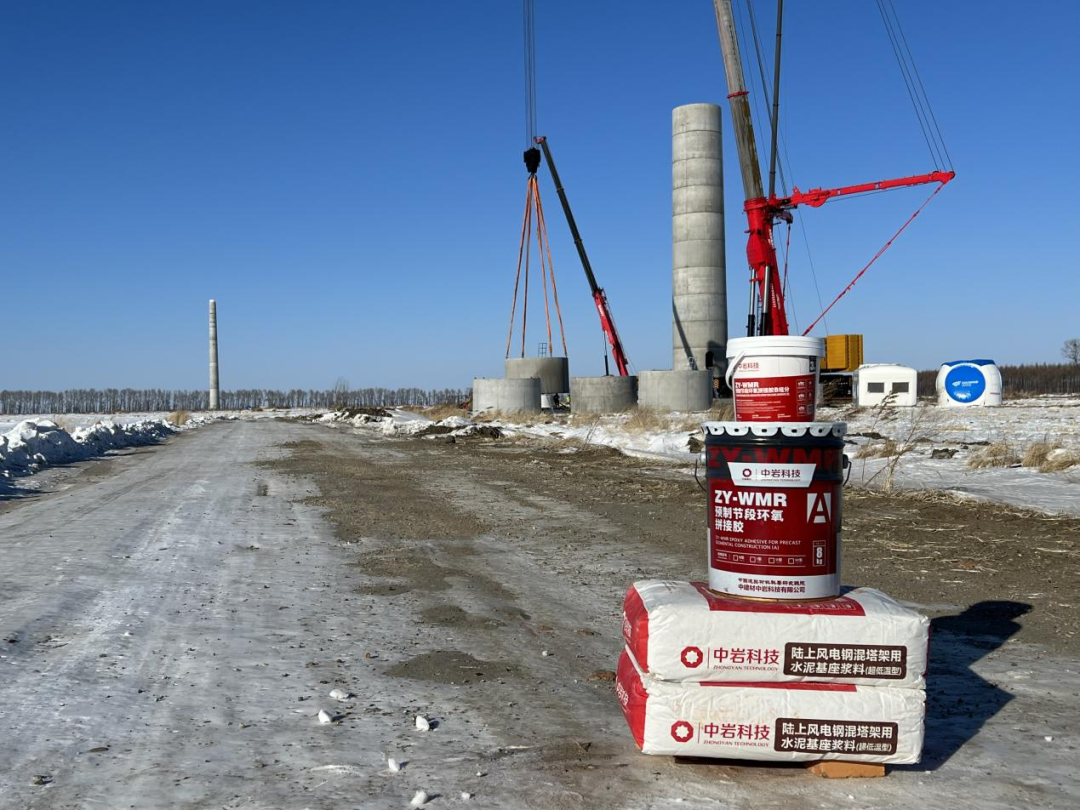 开发的高性能陆上风电钢混塔架用风电座浆料,适用于5℃~35℃、-5℃~10℃和-15℃~0℃施工环境,28d抗压强度可达90~110MPa,200万次抗压疲劳试件不破坏,具有施工性能佳、早强高强、微膨胀、耐疲劳等特性,经中国建材联合会科技成果鉴定总体达国际先进水平,其中负温型产品达国际领先水平。