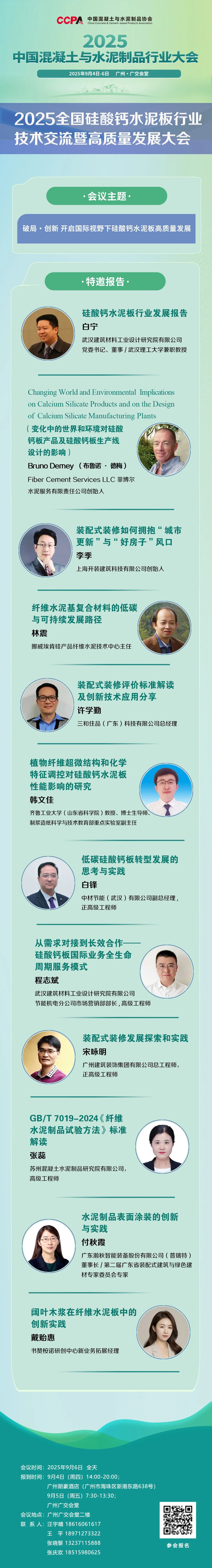 破局时刻已至,创新浪潮奔涌! 9月6日,让我们相约广州,与国内外行业大咖、技术专家、产业伙伴共聚一堂,在思想碰撞中启迪智慧,在资源对接中发现机遇,携手推动硅酸钙水泥板行业迈向更高质量、更可持续、更具国际竞争力的崭新未来!