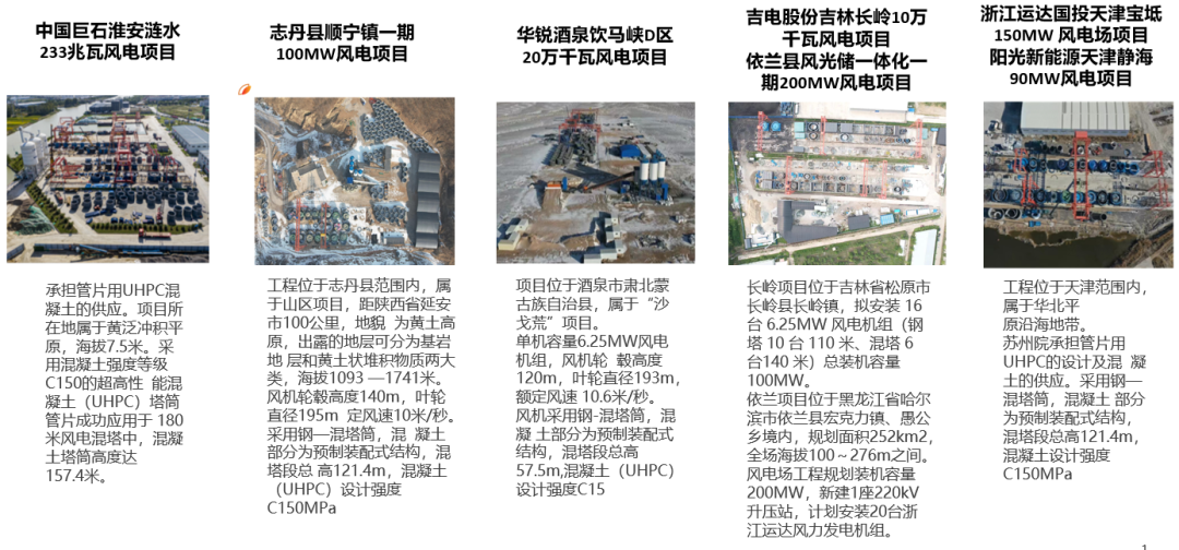 成功应用于全球首台180米UHPC150风电混塔(涟水巨石项目),并在江苏、甘肃、陕西、天津等多地实现批量化生产应用,技术成熟可靠。