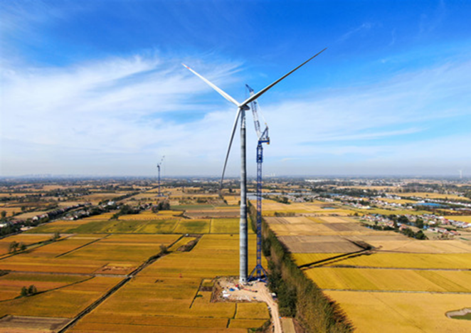 (风电混塔的筒高达180米,其中混凝土段高度157.4米、底部直径7.8米、顶部直径4.8米、总重量1840吨)