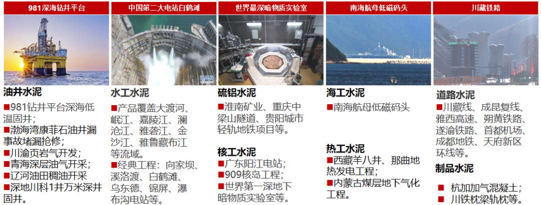 研究院累计开发8个品类116个产品 ,上市50余个产品,特种水泥品种数量位列全国第一,包括川藏铁路专用低热硅酸盐水泥、低碳胶凝材料、高温固井水泥,稠油热采固井水泥、制品水泥等油井水泥、水工水泥、硫铝酸盐水泥的市场占有率位列全国第一。
