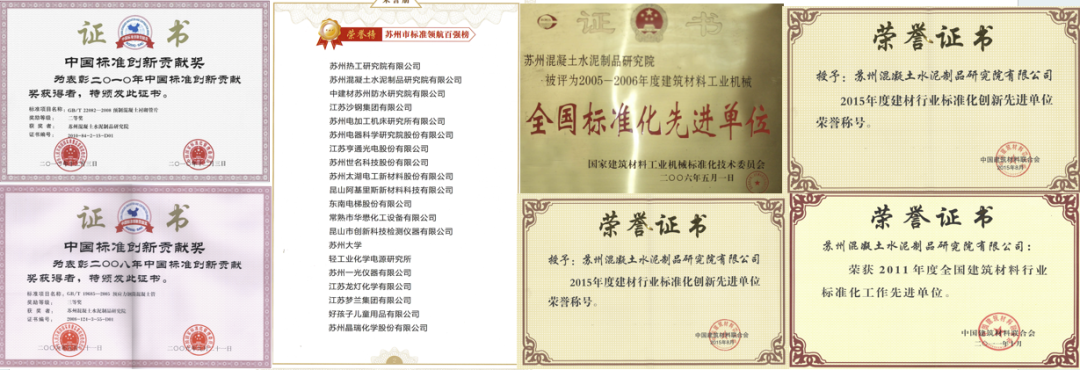 研究院拥有专利授权超195件(发明专利135件),主导或参与制修订国家标准73项、行业标准108项,涵盖风电、核电、能源、交通等高端领域。主要有GB 38263《水泥制品单位产品能源消耗限额》、GB/T 22082《预制混凝土衬砌管片》、GB/T 21120《水泥混凝土和砂浆用合成纤维》、GB/T8077《混凝土外加剂匀质性试验方法》、GB/T 10238《油井水泥》、GB/T 31545《核电工程用硅酸盐水泥》等关键标准,同时承担的SAC/TC 197秘书处归口管理了220余项混凝土、水泥制品、外加剂国家、行业标准,显著提升行业技术话语权。