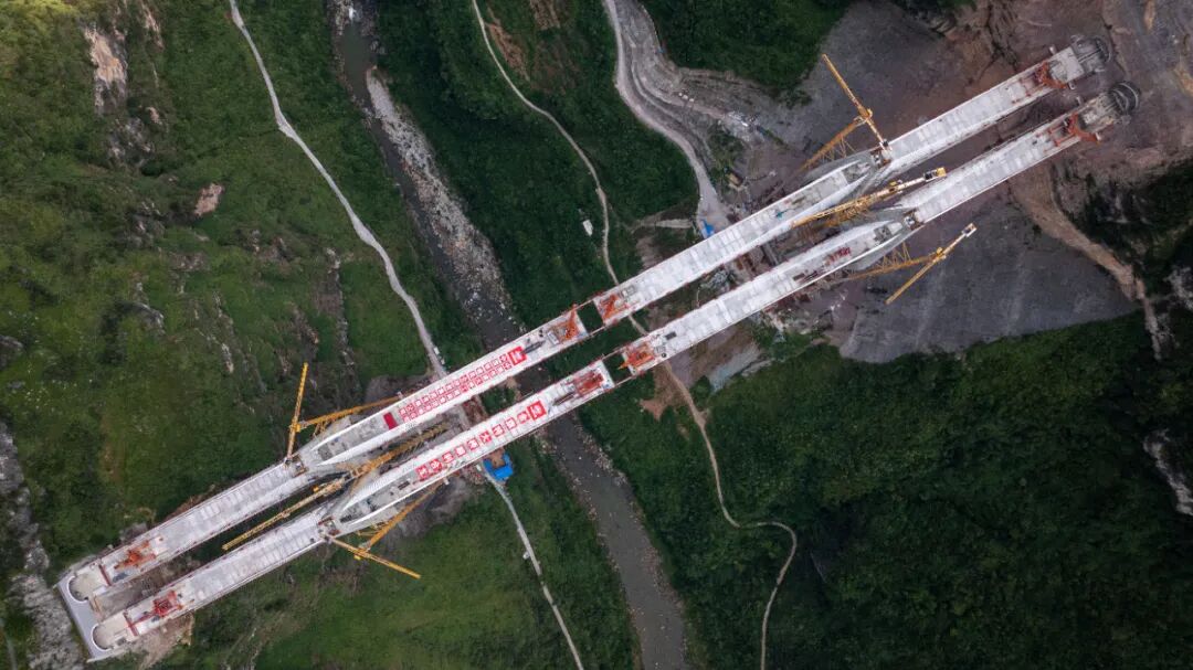 作为乌长高速公路的关键控制性工程,金旗特大桥的建设面临300米超高连体塔施工、塔梁固结体系钢梁安装线形精确控制、超大型堆积体及卸荷裂隙带爆破清除等三项世界技术难题。