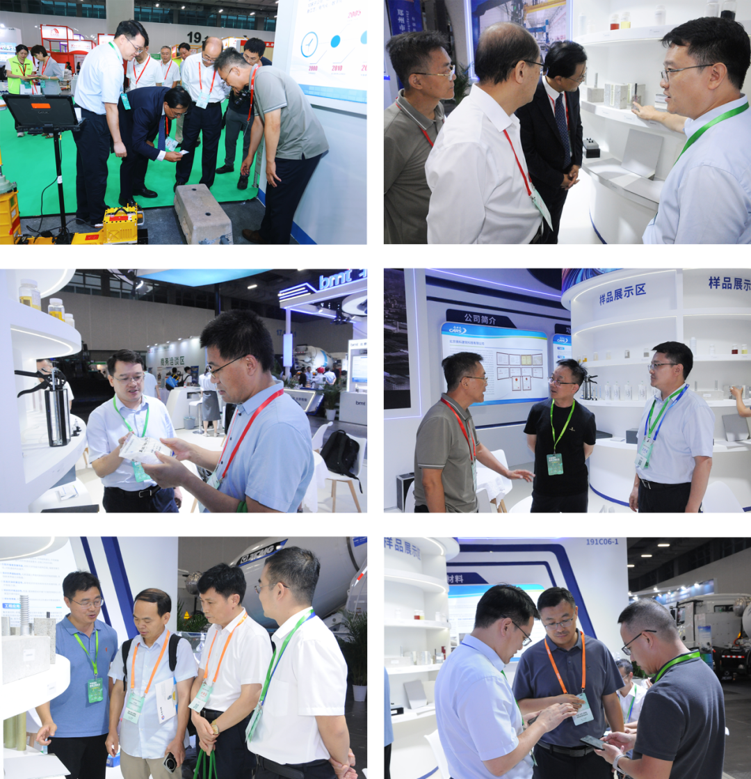 铁科建筑在此次展会上携三大核心板块惊艳亮相:在功能材料板块,重点展示粘性改性材料、抗裂内养护剂、无收缩压浆料、降粘剂、免压沥青砂、填充砂浆、喷射混凝土用早强型复合掺合料等拳头产品;修补材料板块推出裂缝快速修补材料、轨道板间离缝注浆材料、聚合物水泥砂浆和自填充混凝土等先进材料;高分子材料板块则展出无溶剂环氧渗透底漆、反射隔热氟碳面漆、低表面处理漆、高性能植筋锚固浆、环保型道钉锚固胶、预制节段高性能拼缝胶、耐潮湿环氧裂缝修补胶等前沿产品。