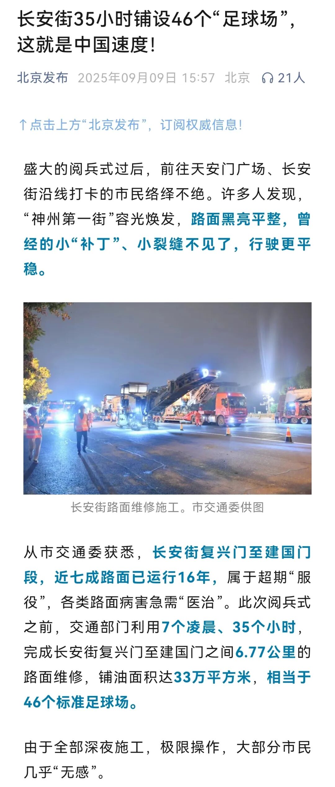 “中国速度”提前“受阅”,长安街路面35小时焕然一新