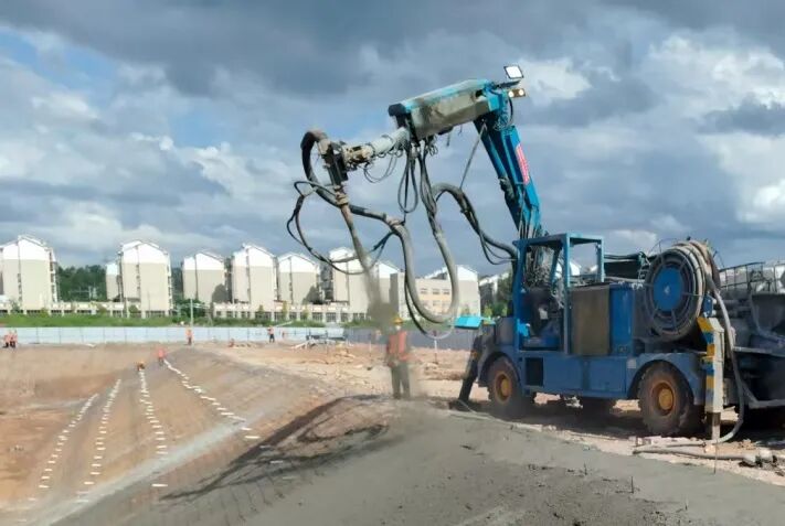 喷射混凝土是基坑加固的关键材料,能紧密附着于基坑壁面,快速形成高强度刚性支护层。该材料具有卓越的抗土体压力性能和抗渗性,具有防坍塌作用。因其施工无需架设模板,尤其适用于复杂形态的基坑工程。喷射混凝土工作原理类似于生活中的“液体创口贴”。