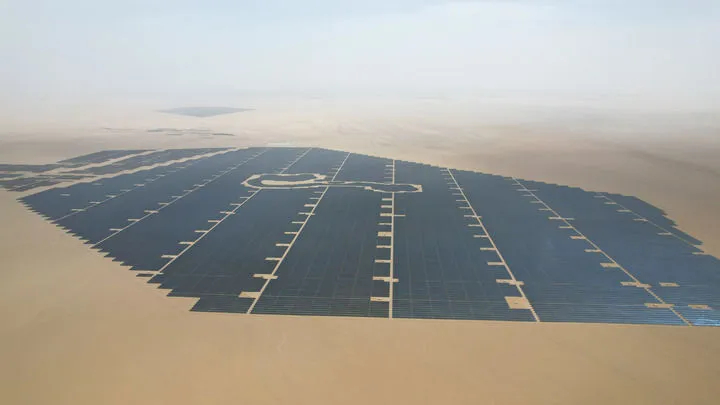 新疆和田地区光伏产业园拍摄的“沙戈荒”光伏项目(无人机照片)