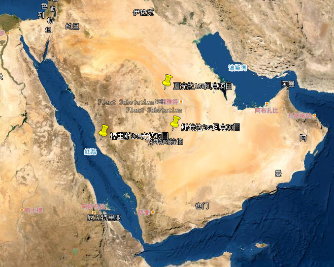 三个新能源项目包括沙特PIF五期夏奇拉1GW风电、沙特PIF五期斯特拉2GW风电、沙特PIF六期福里斯2GW光伏项目。