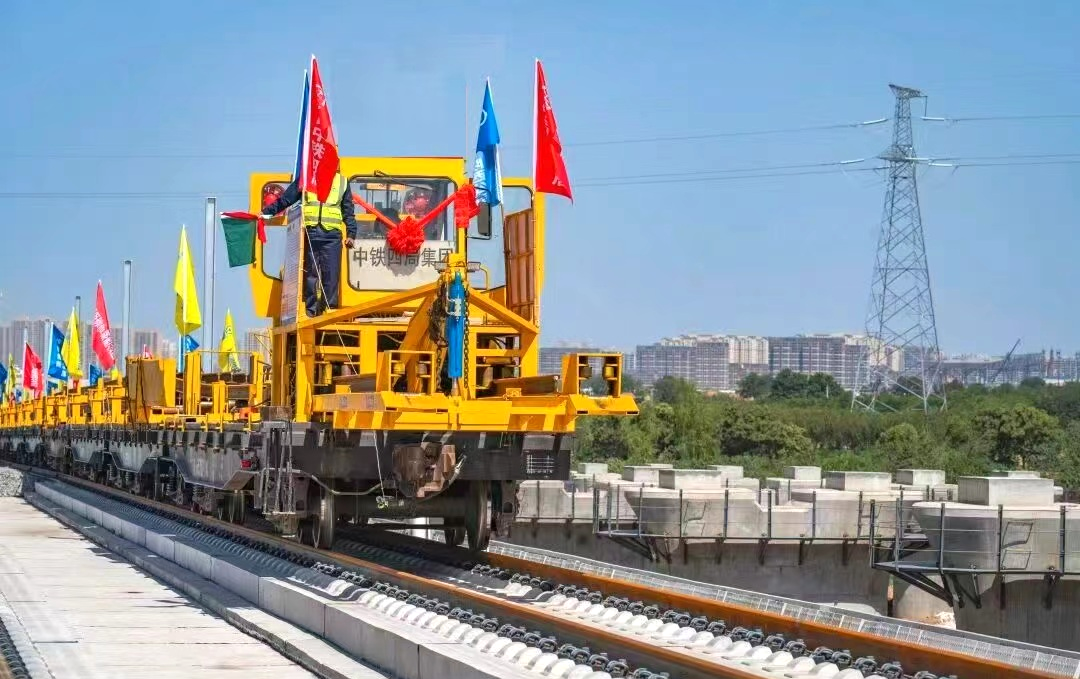 工程人员通过优化作业流程,实现道砟预铺、轨排铺设、扣件安装等工序无缝衔接,轨道铺设精度控制在毫米级,单日最高铺轨10公里,为全线铺轨顺利完成提供了有力保障。