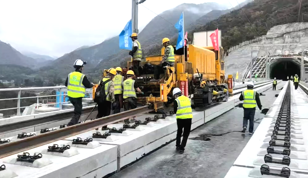 随着铺轨机将最后一对