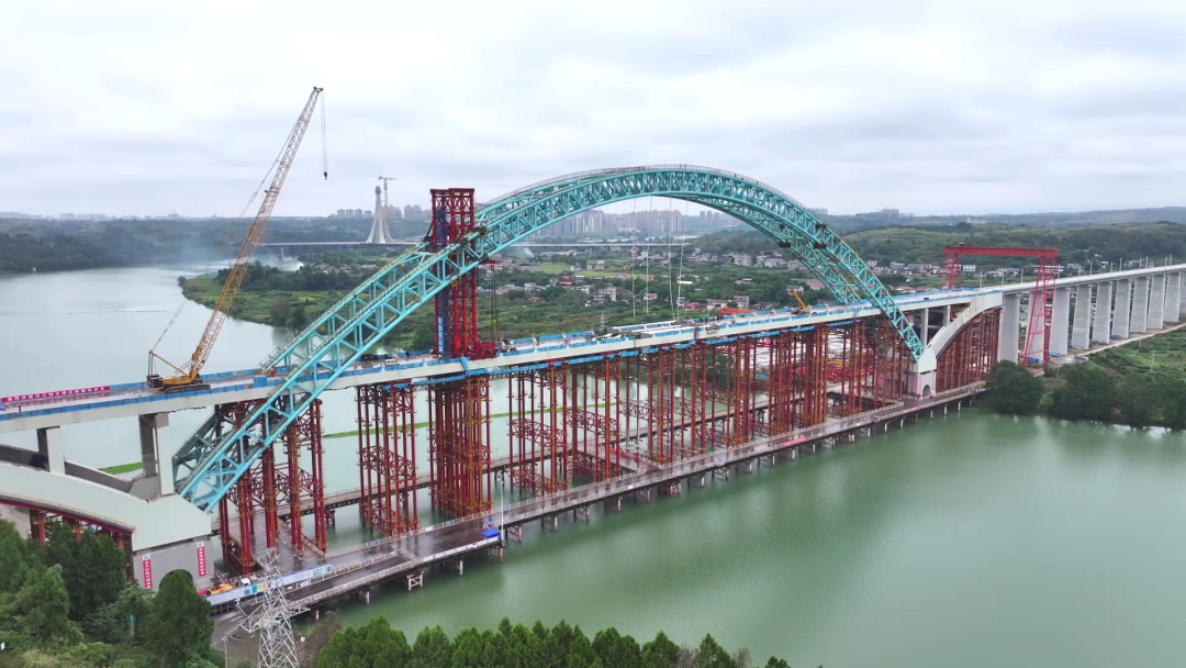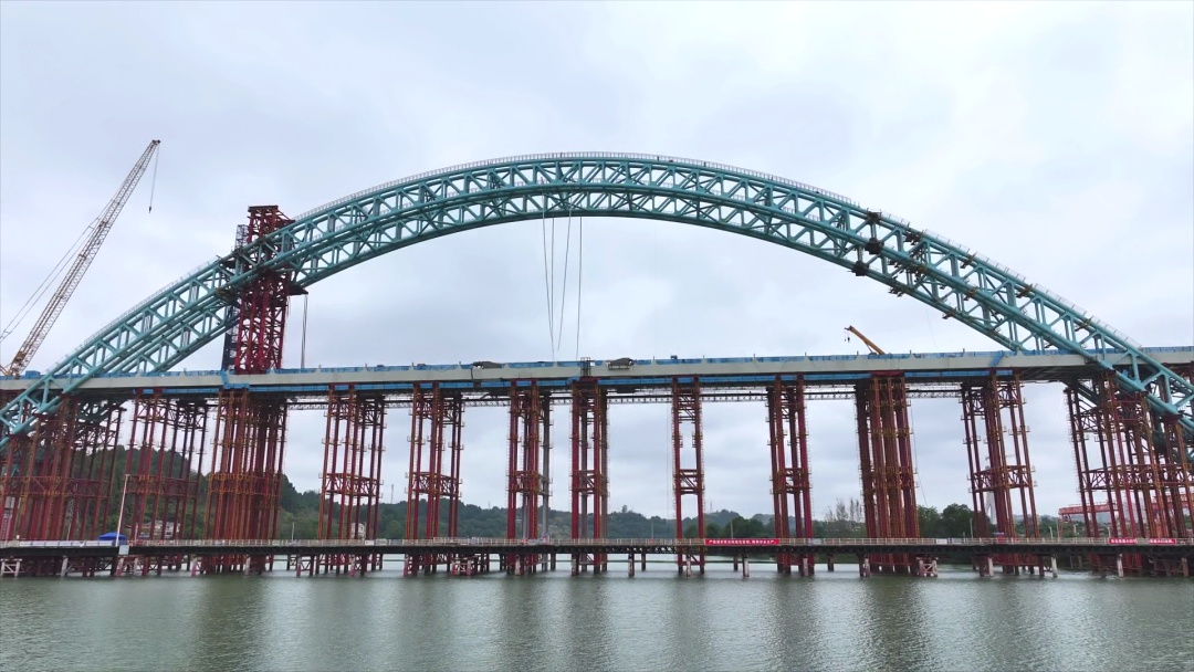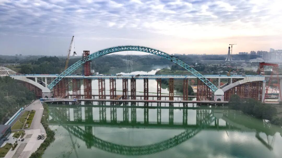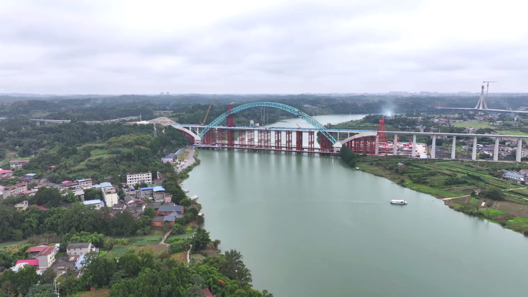 “大桥如同‘巨弓’横跨沱江,形成‘无推力’自平衡稳定结构,在均衡安全性、经济性和施工可行性上实现了‘最优解’。”施工单位相关负责人介绍道。
