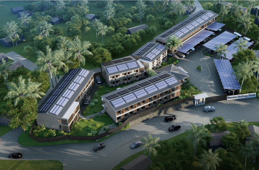 Kerema模块化酒店(EPC)项目位于巴布亚新几内亚中南部海湾省首府Kerema地区,其建设内容包括60套客房的三星级酒店及相关的功能配套设施,包括客房、餐厅、健身房、会议室、室外停车场等,配备光伏发电系统,总建筑面积约3,500平方米。