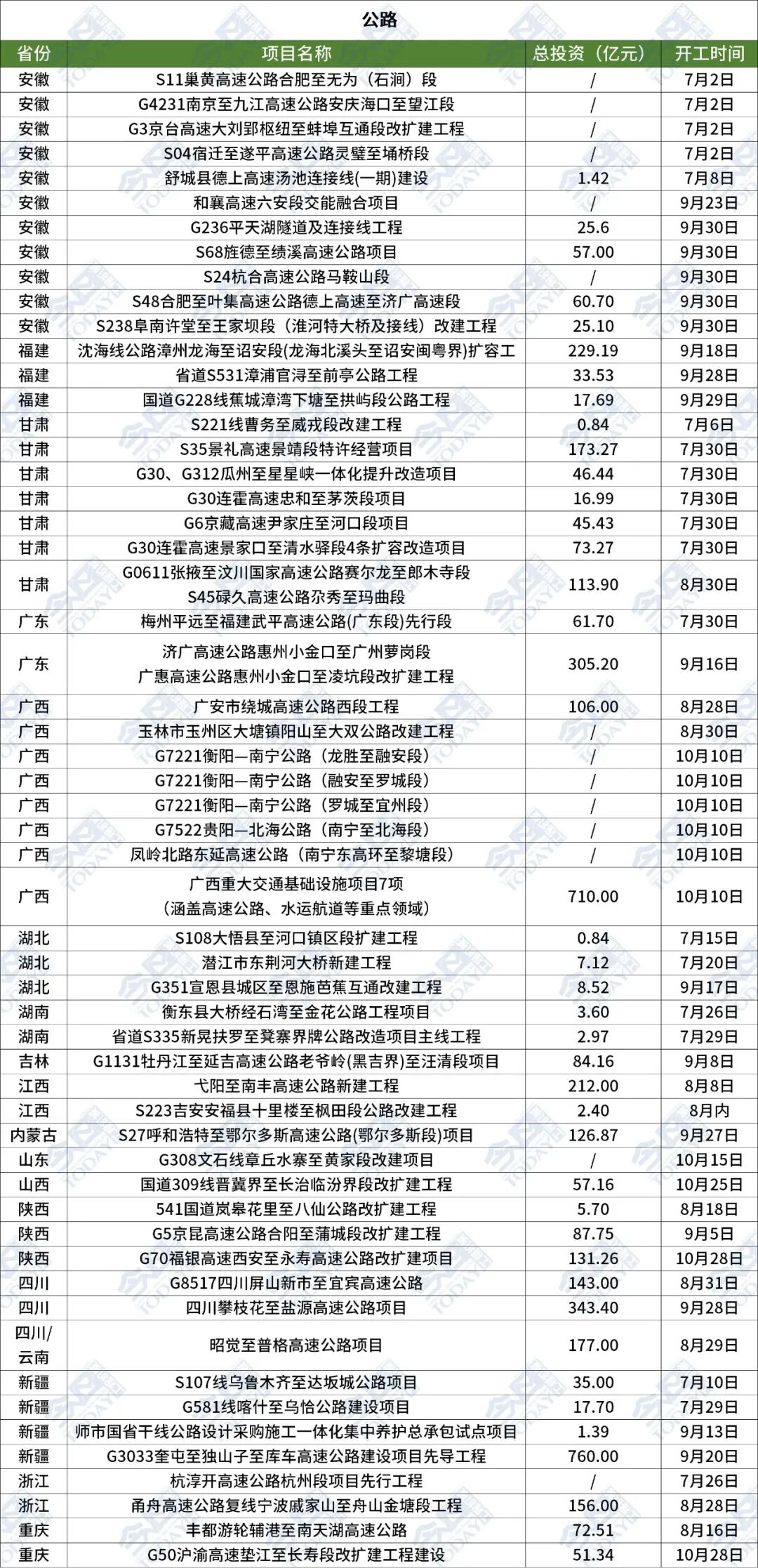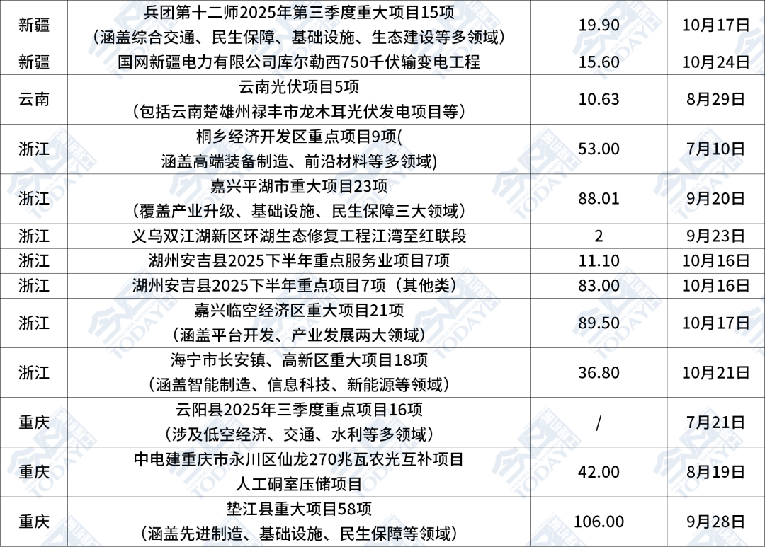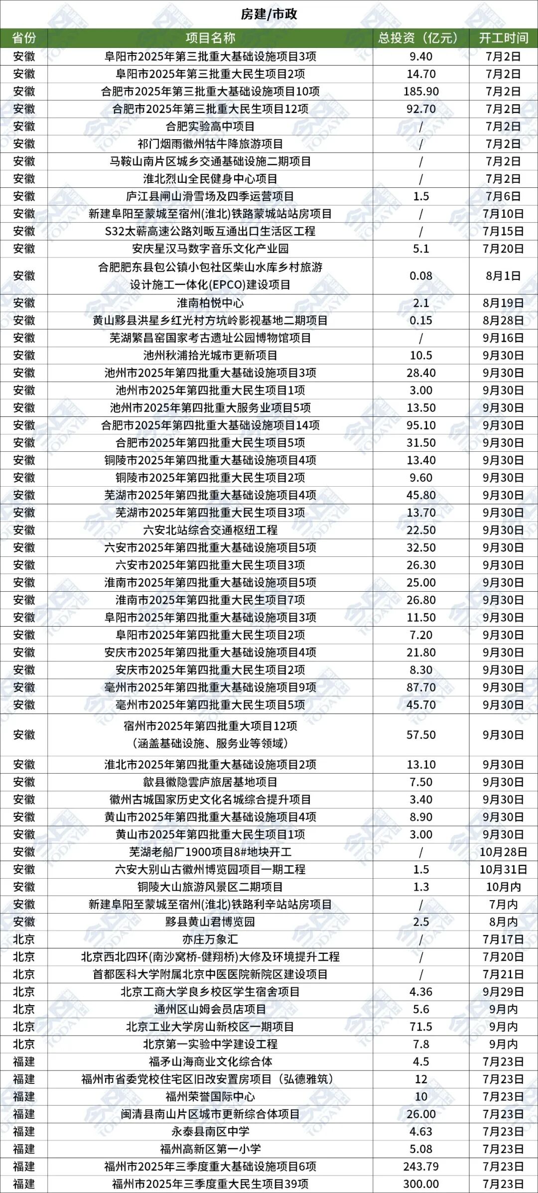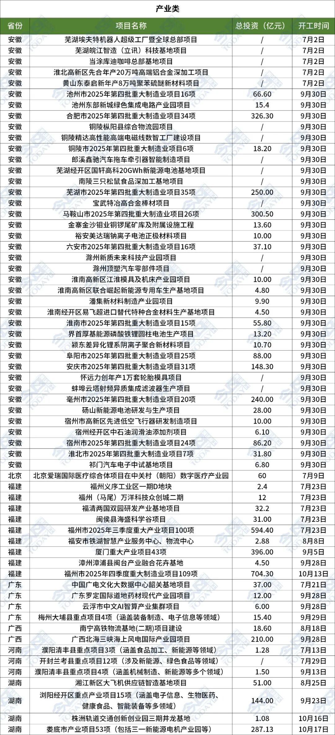 以下为2025年7-10月全国重大/重点开工项目详情,1-6月开工情况请参考总投资8.9万亿元,2025年1-6月全国重大开工项目梳理