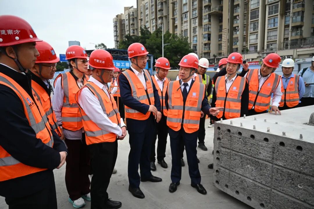 中国工程院陈湘生院士,中建南方、深圳地铁、中建八局相关领导分别发表讲话,从行业发展、科技创新、工程实践等角度对体系应用前景进行了深入解读。发布会结束后,院士一行到达施工现场进行观摩。