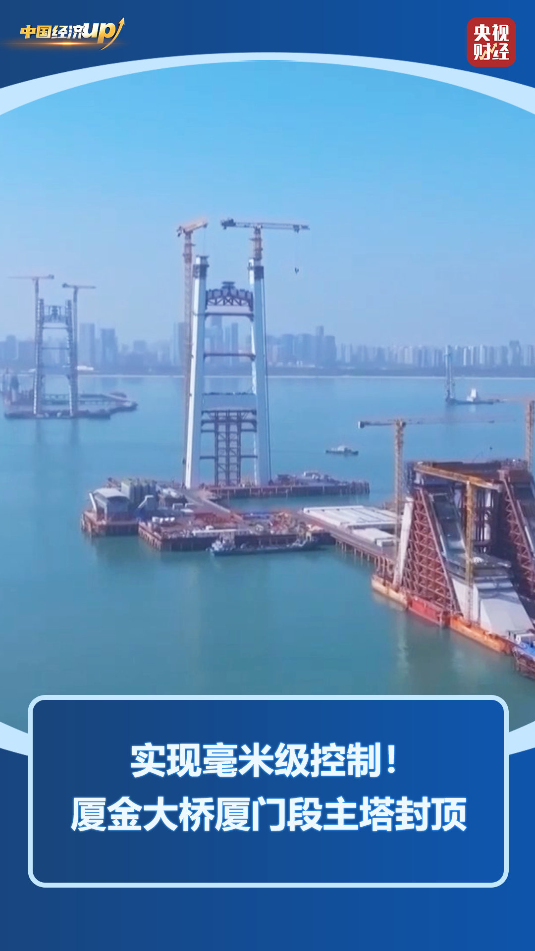 12月1日,厦金大桥厦门段关键控制性工程刘五店航道桥主塔完成封顶,大桥建设从“立塔成型”转入“悬索成桥”关键施工阶段,为后续主缆架设、钢箱梁吊装等工序奠定坚实基础。