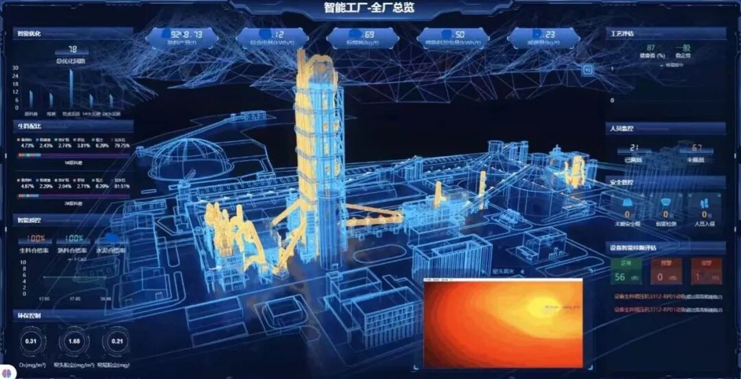 来到二楼的智慧运营中心,大屏幕上正显示着各种操控界面。周强介绍,这里是整个工厂的运维保障中心,12名新型工程师对生产运行过程中的安全环保、质量控制、工艺调整、设备维护等相关数据进行处理,进一步挖掘分析数据价值,保障生产线安稳运行。