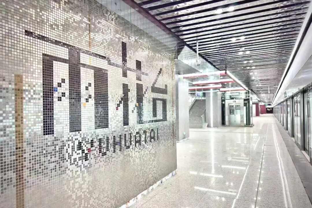 作为与既有3号线换乘的特色车站,雨花台站以“延展中的底蕴”为主题,提取雨滴形态作为设计元素,运用模块化线条与灯光营造红色文化氛围,诠释红色精神在当代的存续与焕新。站厅文化墙艺术品《落花如雨》描绘了花团蝶舞、落花似雨的场景,并应用全息旋转成像装置交互技术,讴歌了生命的绚烂和生活的美好。