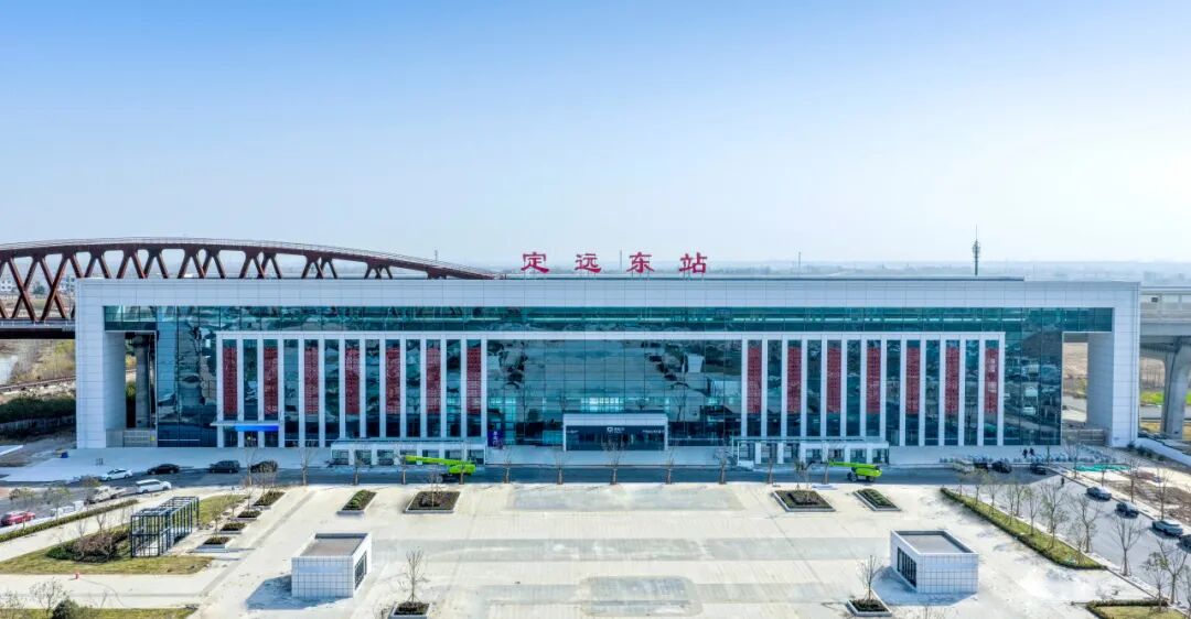 定远东站位于安徽省滁州市定远县,站型为高架式,站房位于线路下方。站房外观采用矩形框景形式,实现立面形式与站房功能的完美统一。