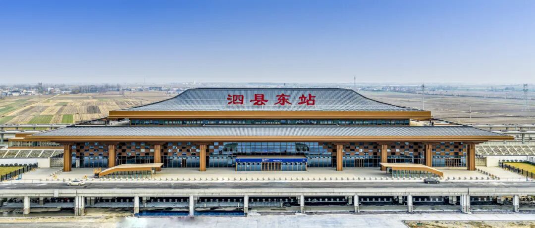 泗县东站位于安徽省宿州市泗县,车站以“隋唐古韵,运河新风”为设计主题,立面设计借鉴隋唐建筑的重檐大坡屋顶及檐口斗拱形式,凸显昔日古城气质。