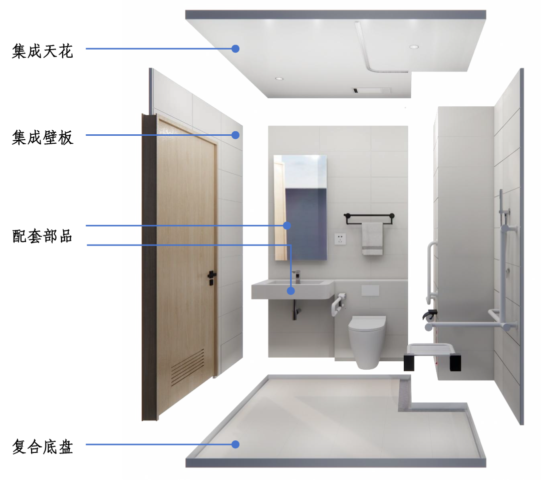 车间智造同步赋予内部功能部件突出优势。以装配式整体卫浴为例,其在工厂一次成型,一体化底盘防水性能卓越,形成“主体防水+箱间防水+箱体防水”三重防线,从根源上杜绝渗漏通病。