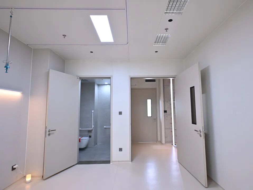 墙面均选用高抗菌、易清洁的洁净板材,无有害气体释放,保障室内空气安全;地面强化防滑耐磨性能,筑牢行走安全防线。