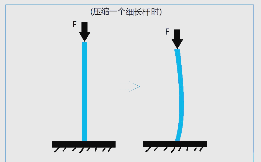 你可以做一个简单的实验:找一根细长的塑料尺,竖直立在桌上,用手指从上往下压。你会发现,尺子不是被"压碎"的,而是突然往一边弯曲、折断。