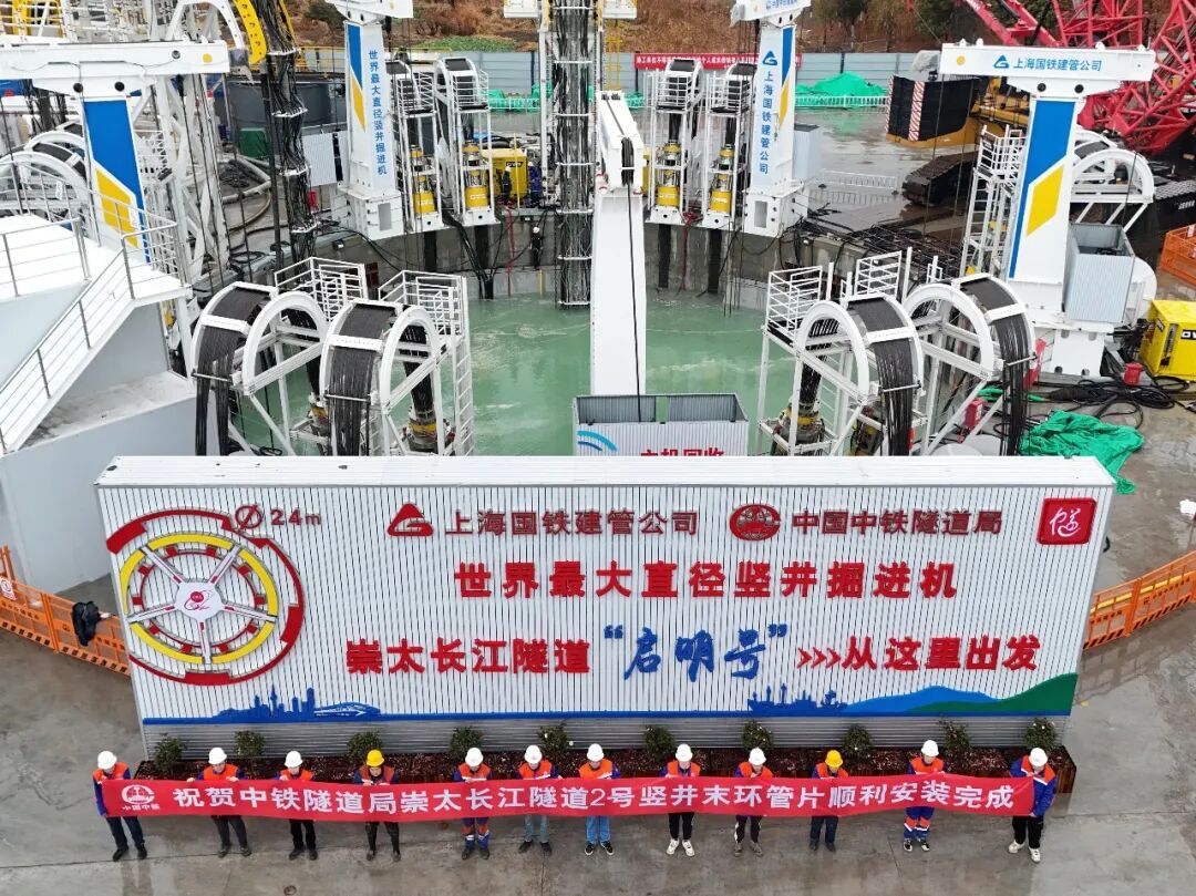1月30日,由我国自主研制的世界最大直径竖井掘进机——“启明号”在崇太长江隧道2号竖井开挖到底,实现了当月始发、当月完成掘进任务(56.08米)的目标,创造了高铁竖井掘进机直径最大、掘进速度最快的新纪录。