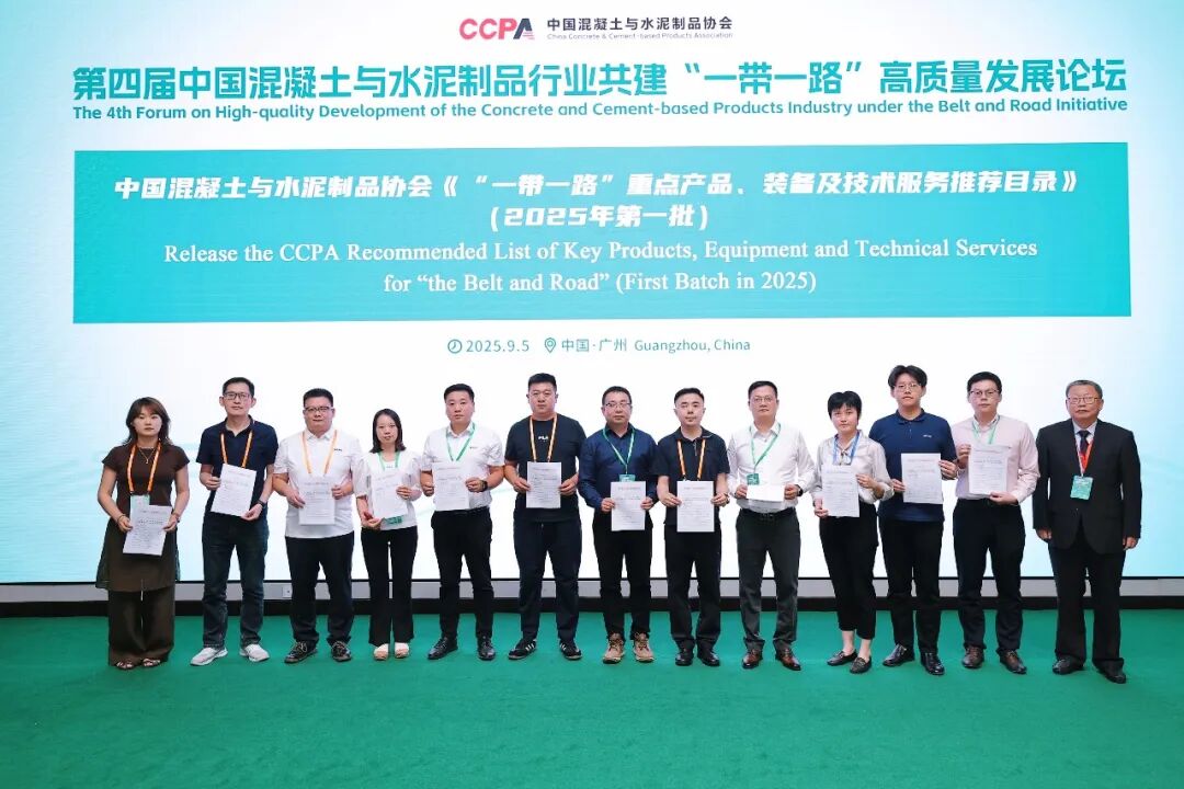 公司产品入选中国混凝土与水泥制品协会《“一带一路”重点产品、装备及技术服务推荐目录》(2025年第一批)↓↓