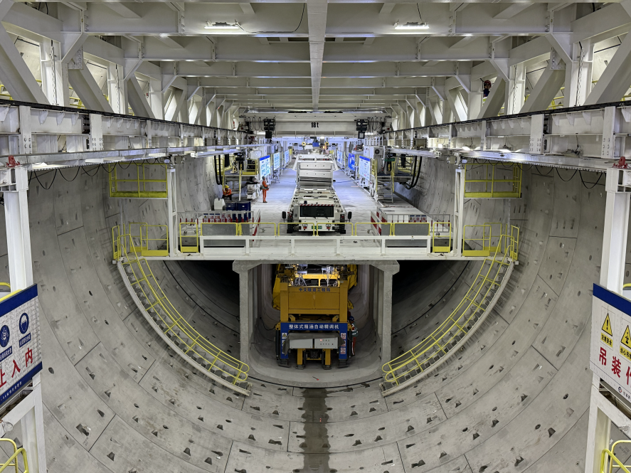 在江苏,世界最长的公路水下盾构隧道海太长江隧道深处,机器轰鸣依旧。为确保这项国家重大工程如期建成,春节期间,铁四院现场设计代表与350多名建设者一起坚守在长江之下数十米的施工前线。左线的“沧渊号”与右线的“江海号”两台国产超大直径盾构机,正以日均数米的速度,在复杂地层中稳步向前。其中,“江海号”创下掘进总里程突破4000米的新节点。面对近10公里的隧道掘进施工,铁四院设计团队采用了“全预制内部结构”的创新设计理念,预制化程度接近90%,减少了传统隧道中大量的洞内现浇混凝土施工,显著改善了洞内环境并极大提高了施工效率,守护着数百名建设者在长江之下的一份舒适和心安。