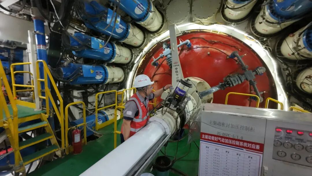 在广东东莞珠江口海平面下113米深处,深江铁路珠江口隧道正在向着最深处挺进。作为全线控制性工程,该隧道全长13.69公里,其中“深江1号”负责5360米掘进任务,最大埋深达116米,水土压力最高达11.6巴,相当于指甲盖上承受11.6公斤的重量。春节期间,“深江1号”盾构机正全力攻坚百米风化深槽,中铁十四局项目团队每日安排专职安全员巡视,对关键施工部位实时监控,确保每一环节严格受控。同时,加大新技术的运用,集成运用HSP超前地质预报、刀具磨损实时监测等先进技术,配合信息化管控平台与高精度导向系统,实现复杂地质条件下的安全、精准、高效掘进。